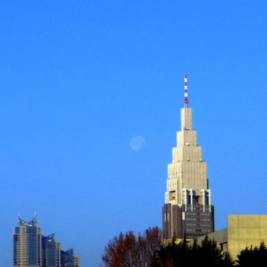 丁度NTTドコモビルに月がかかっていたので写真を撮ってスタンプラリー復帰。