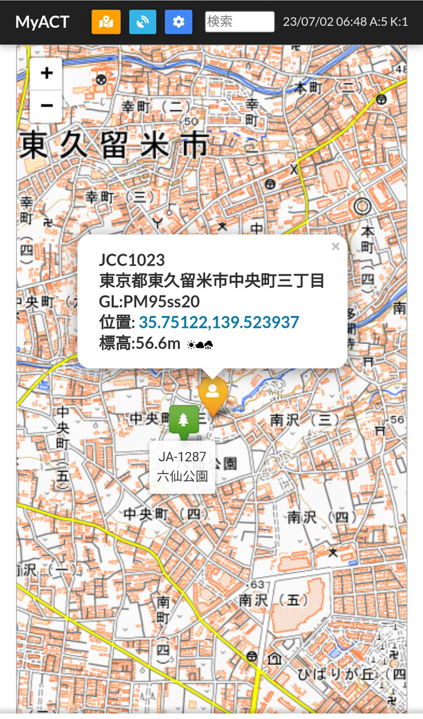 東京都東久留米市六仙公園JCC#1023(POTA JA-1287)標高56.6m