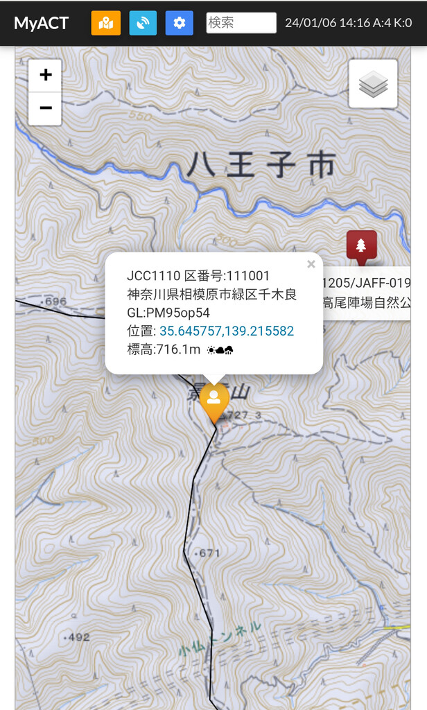移動地/神奈川県相模原市緑区景信山(POTA JA-1290)JCC#111001・標高716.1m