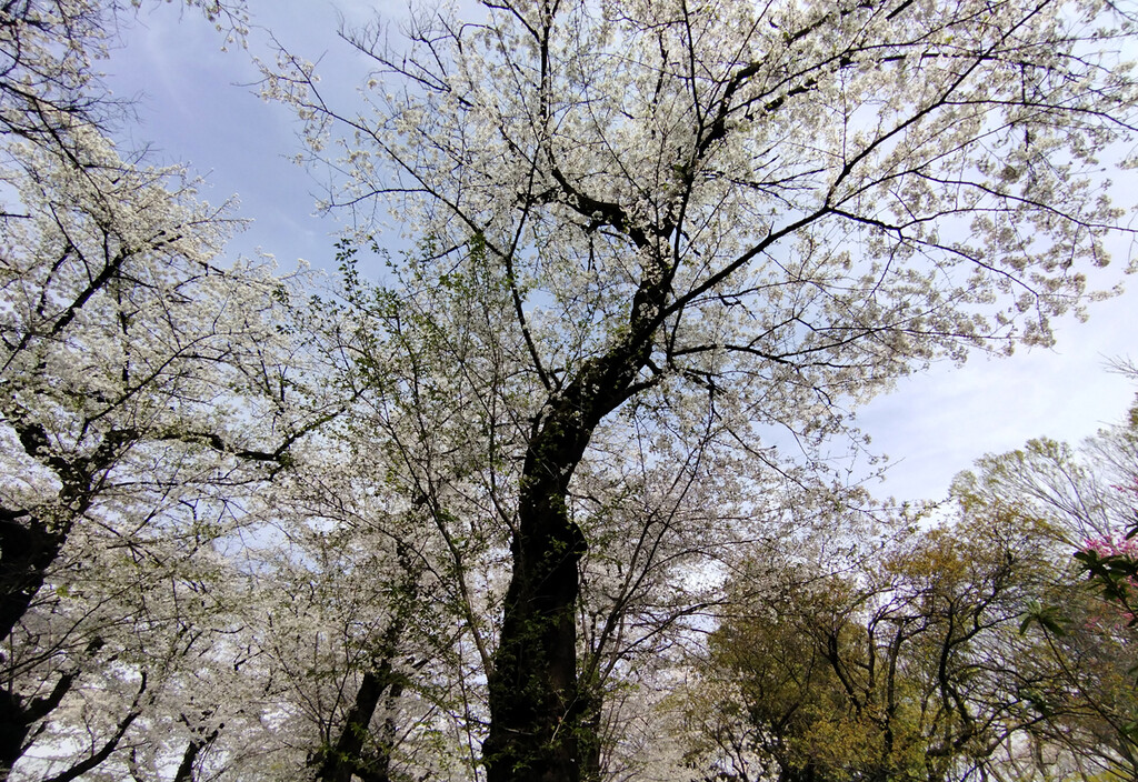 例年より満開がずいぶん遅れたため、同時に新緑も発芽し、花弁も散り始めて慌ただしい桜模様。