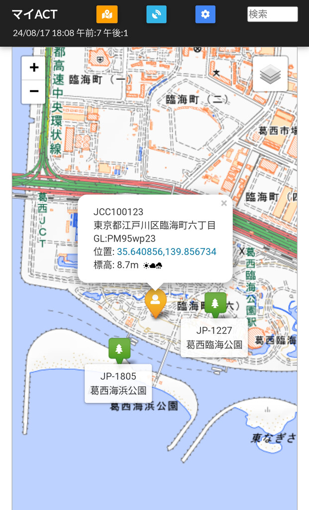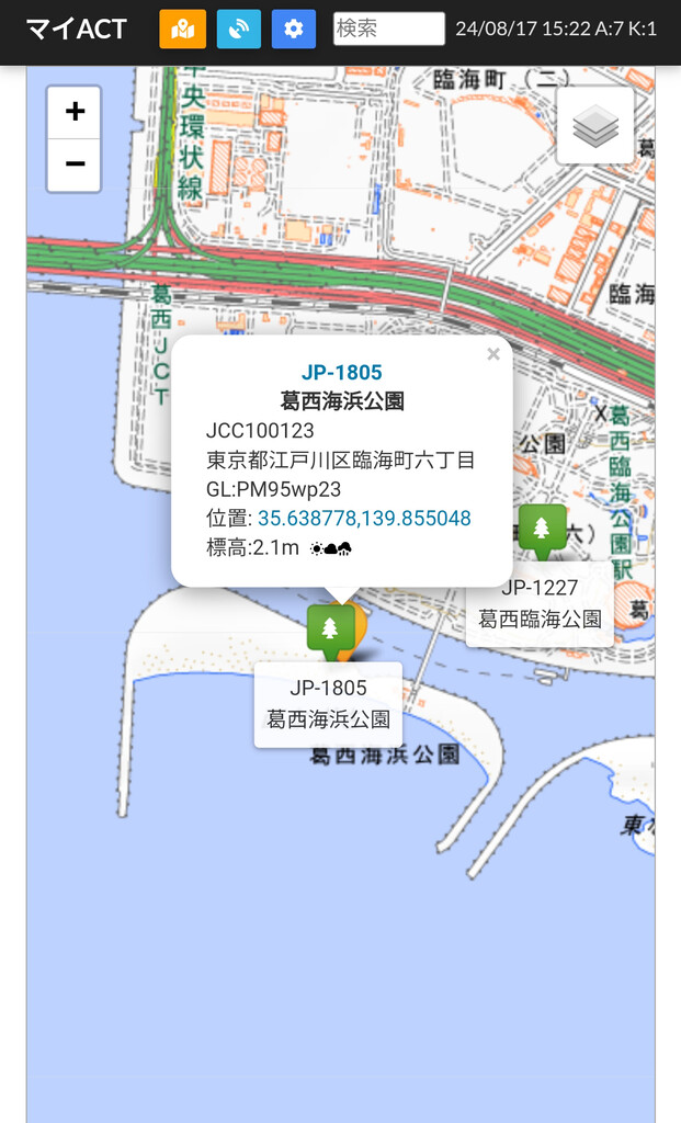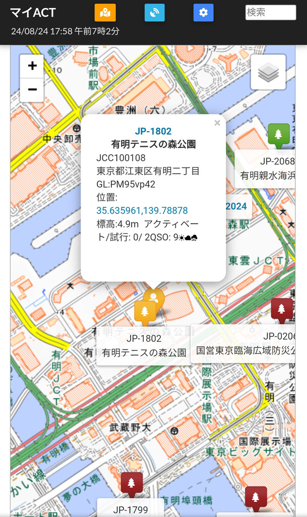 移動地/東京都江東区有明親水海浜公園JCC#100108(POTA JA-2068)標高5.5m