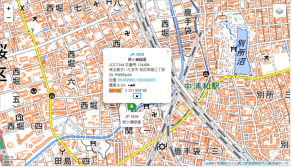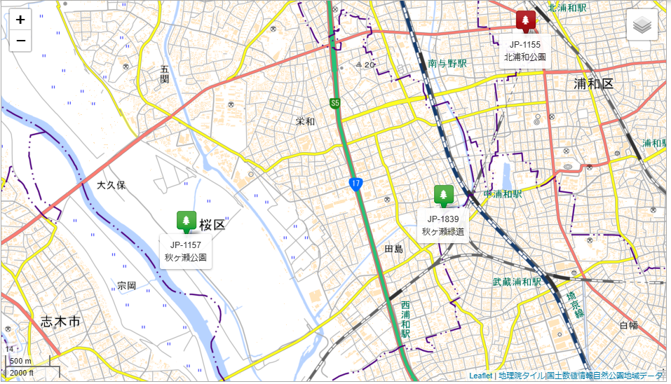 今回の目標は中浦和駅圏内の秋ヶ瀬公園(JP-1157)と秋ヶ瀬緑道(JP-1839)