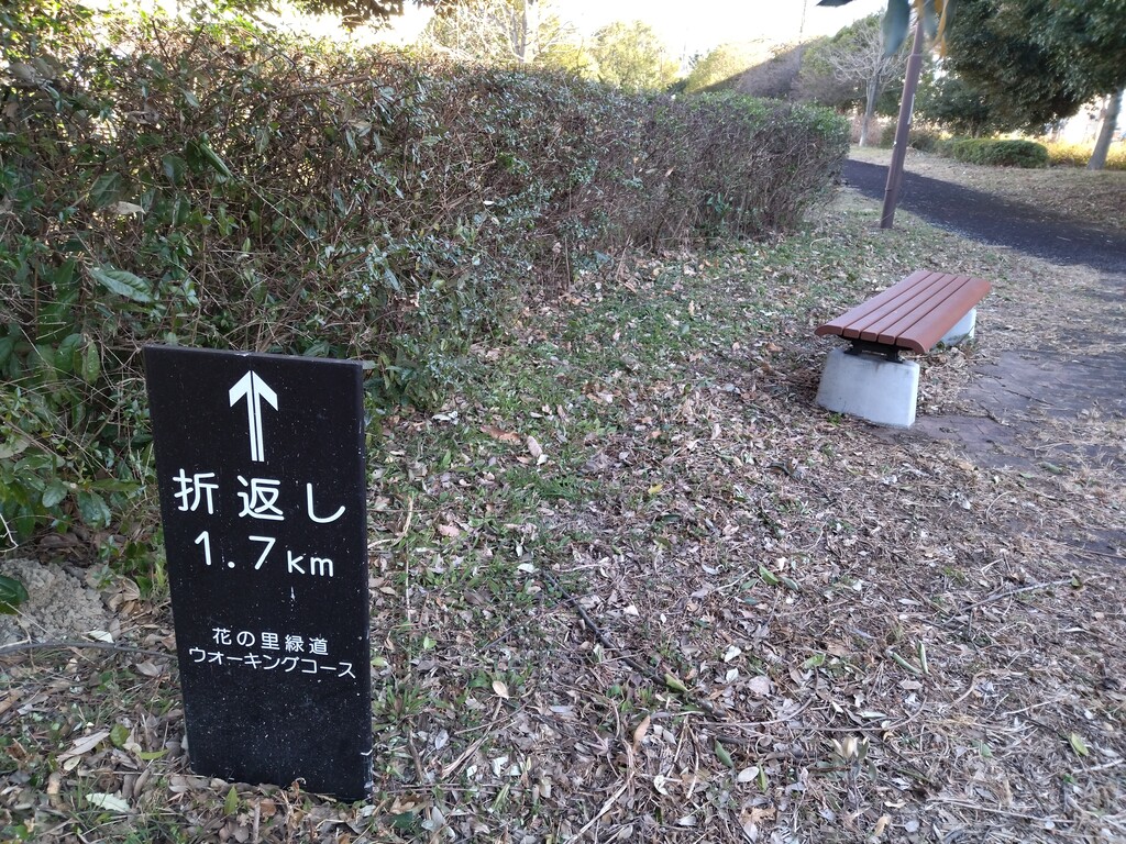 途中1.5km付近で花の里緑道と接続している。