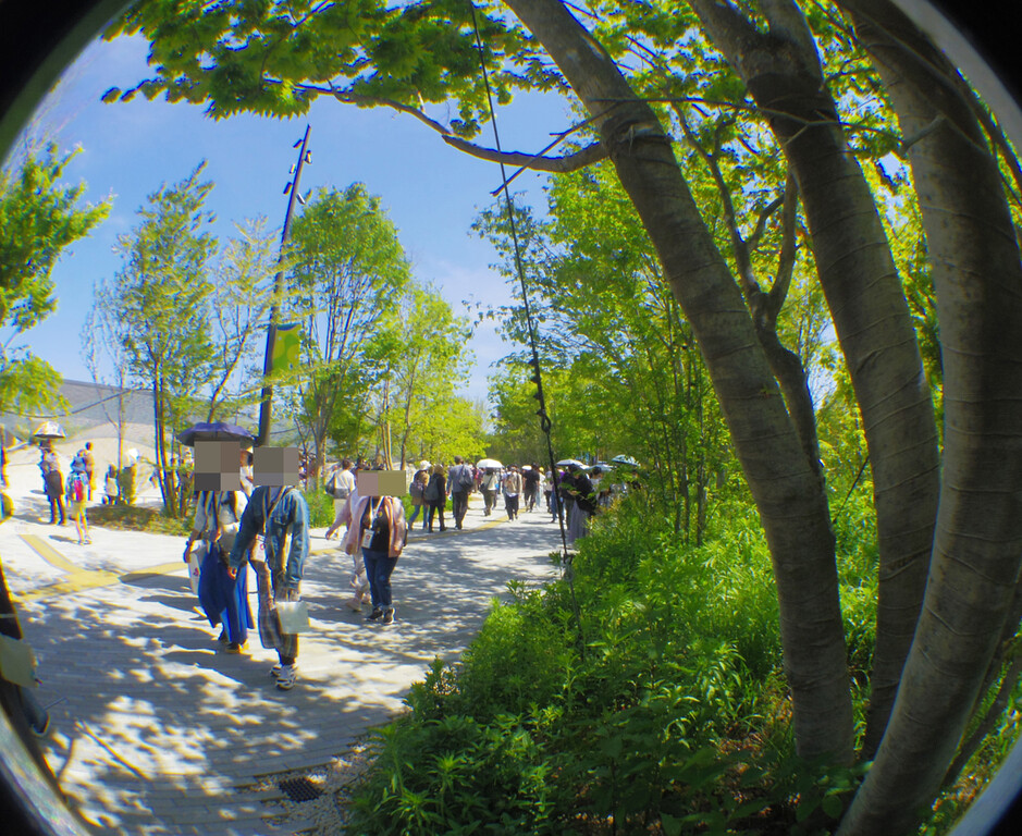 緑道北側に若干の芝地があり、ここなら日差しがあって何とか耐えられそうだ。