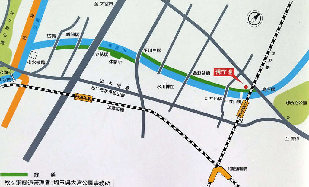 バスで中浦和駅に戻り、徒歩で秋ヶ瀬緑道へ。