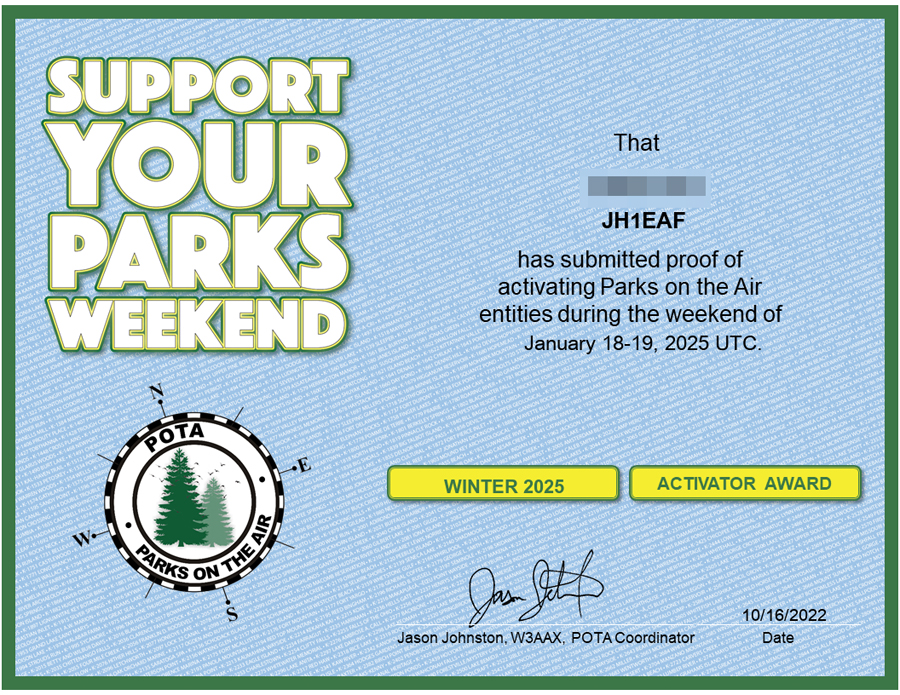 一方連動POTAのNEWアクティベートは10公園となった。