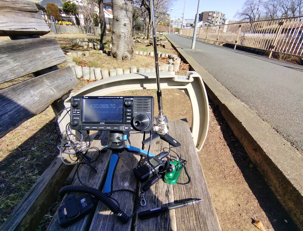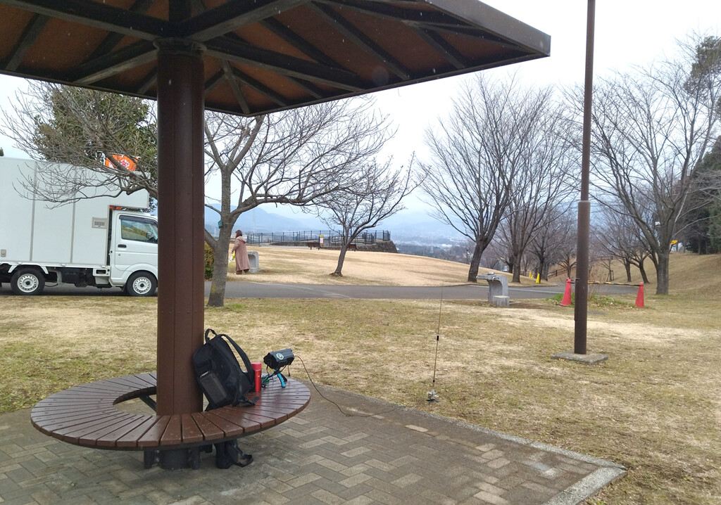 起点から500mほどの場所にベンチがあったので12時10分過ぎから運用開始。