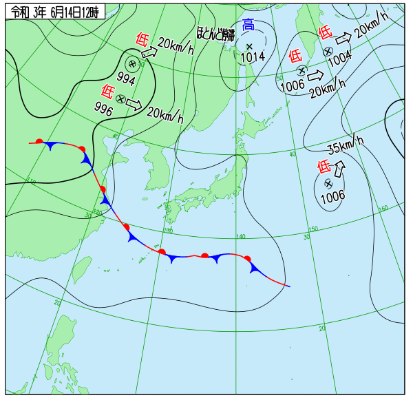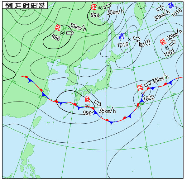 〇6月16日12時天気図