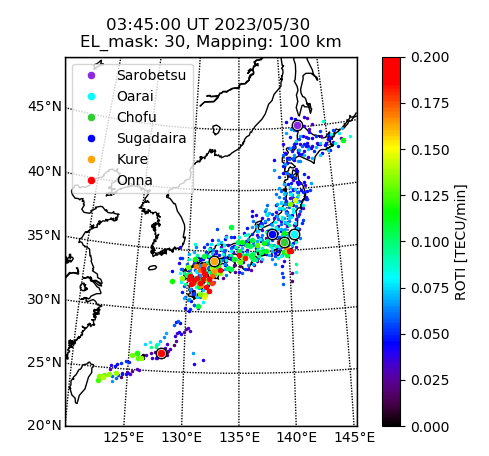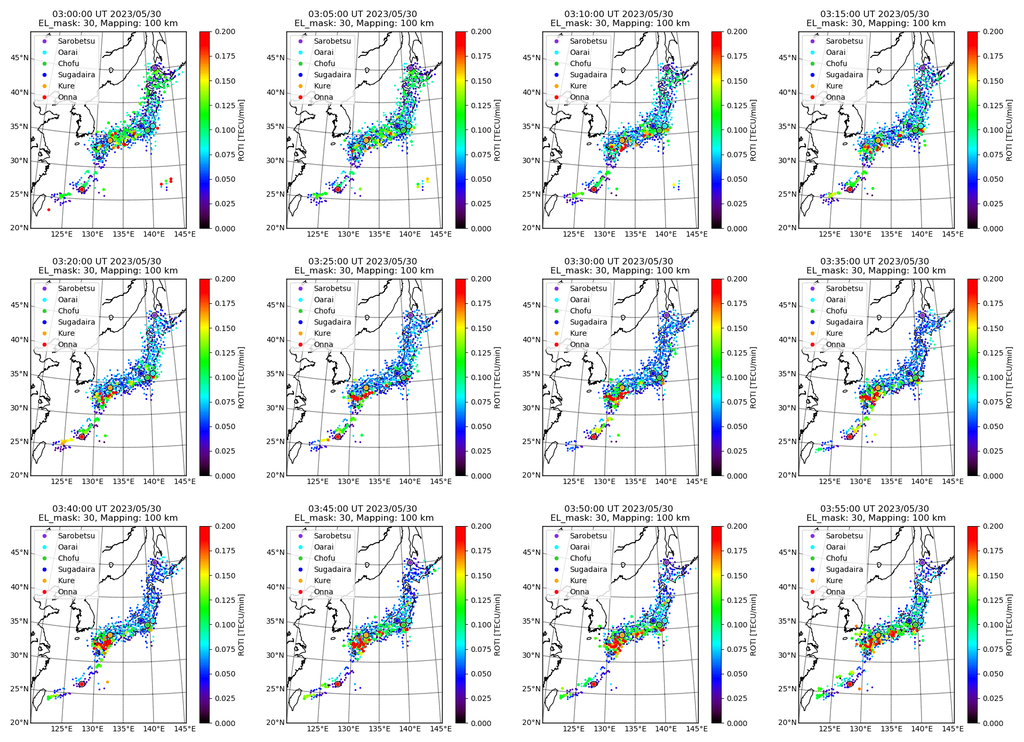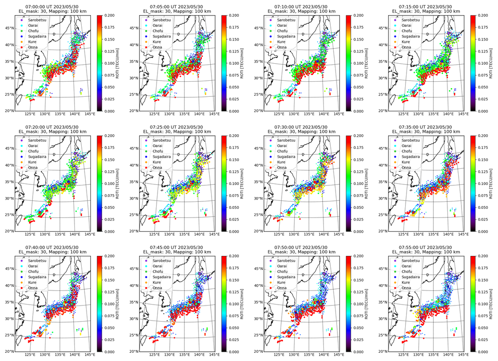 〇1230JSTのGPS-TEC ROTIデータによる Es層2次元画像(画像の表示はUTC)