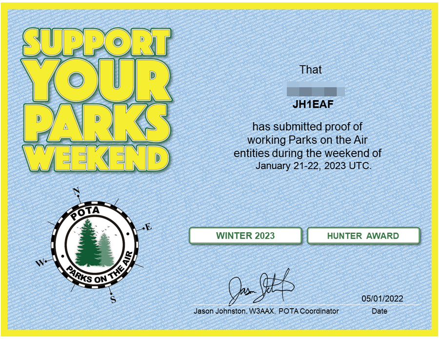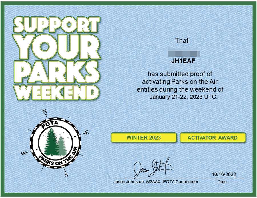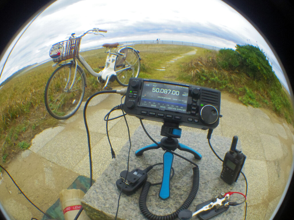 携帯スマホ等の通信機器使用も自由なのでハンディー、ポータブル機にホイップアンテナ程度のQRP運用は可能と自主判断し、人の往来の少ない場所でCWメイン、イヤフォーン装着で極力目立たない運用に終始した。