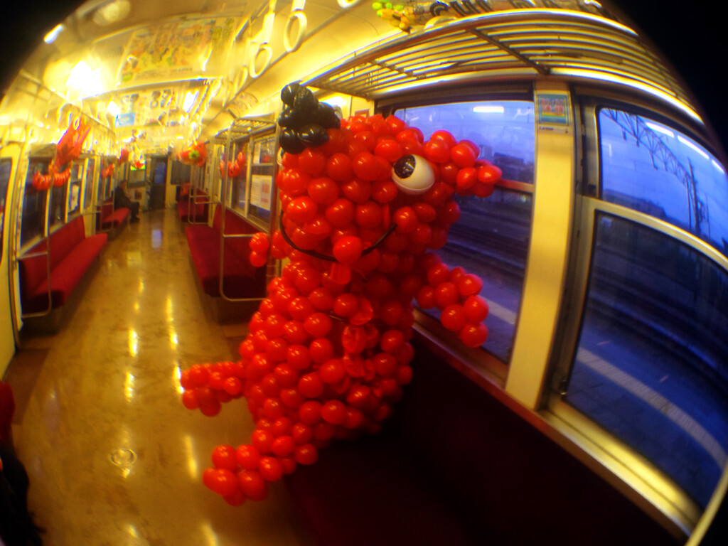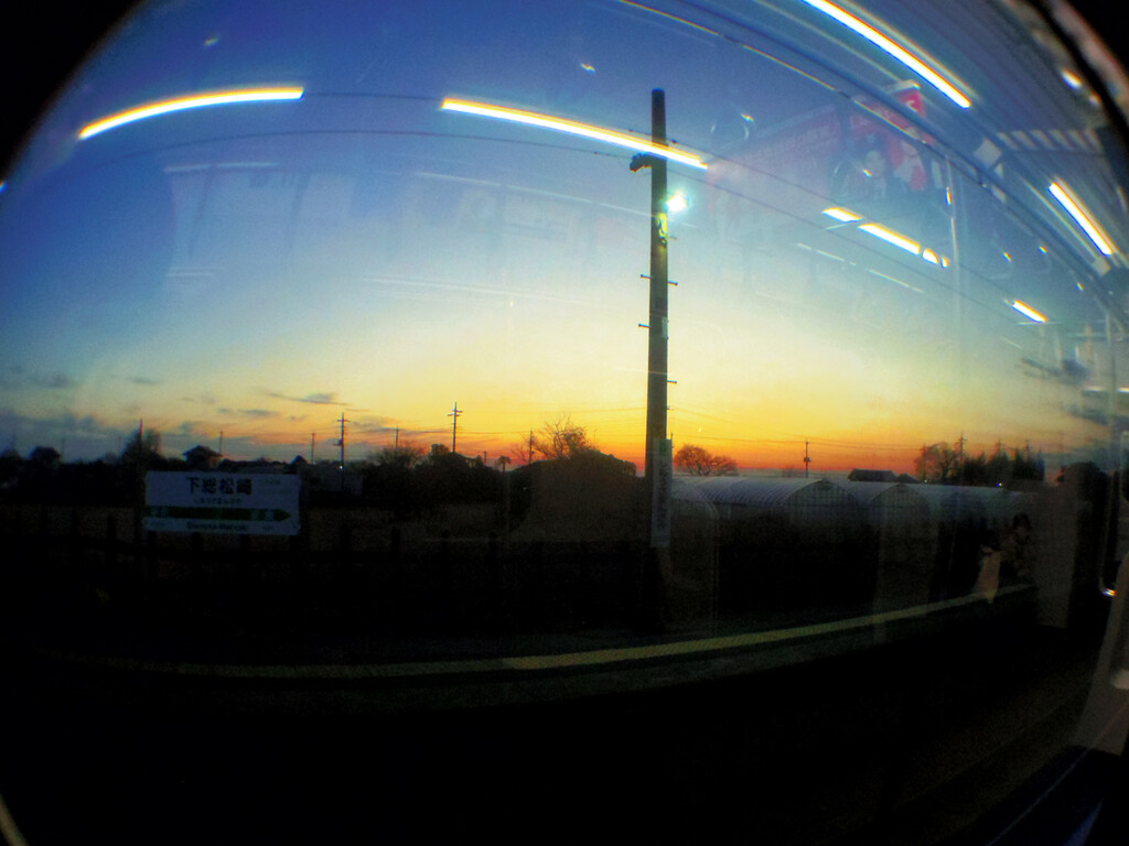 座席はすでに満員。立って終点まで乗車。