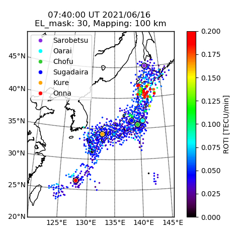 〇6月16日1640JSTのGPS-TEC ROTIデータによる Es層2次元画像(画像の表示はUTC)